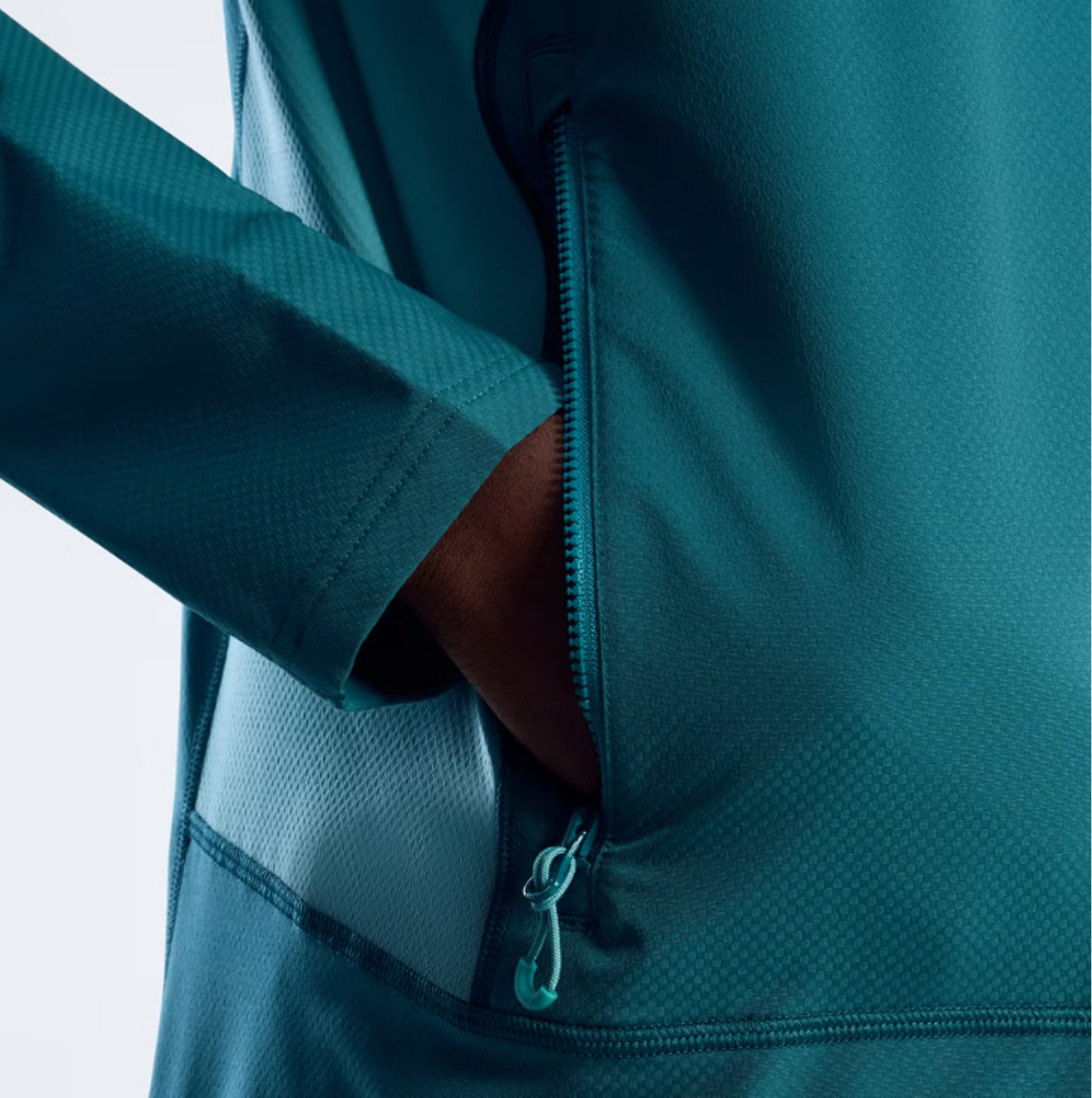 Featuring a lightweight softshell that moves with you, with a wicking finish to keep things dry on the inside and out. Not to mention a bonded hood peak. Flatlocked seams. Half-ribbed cuffs. And an adjustable hem to seal out the worst of it.