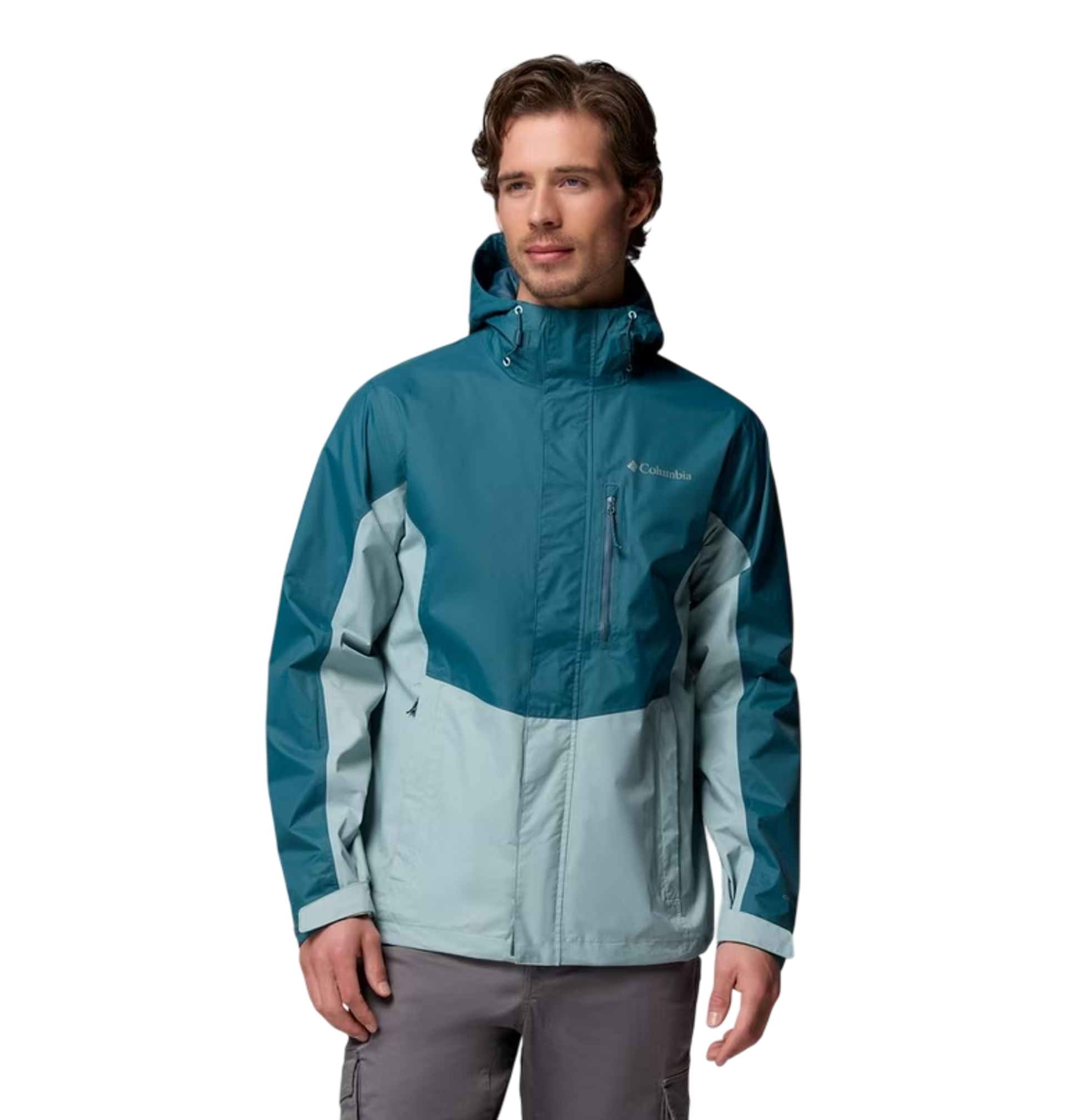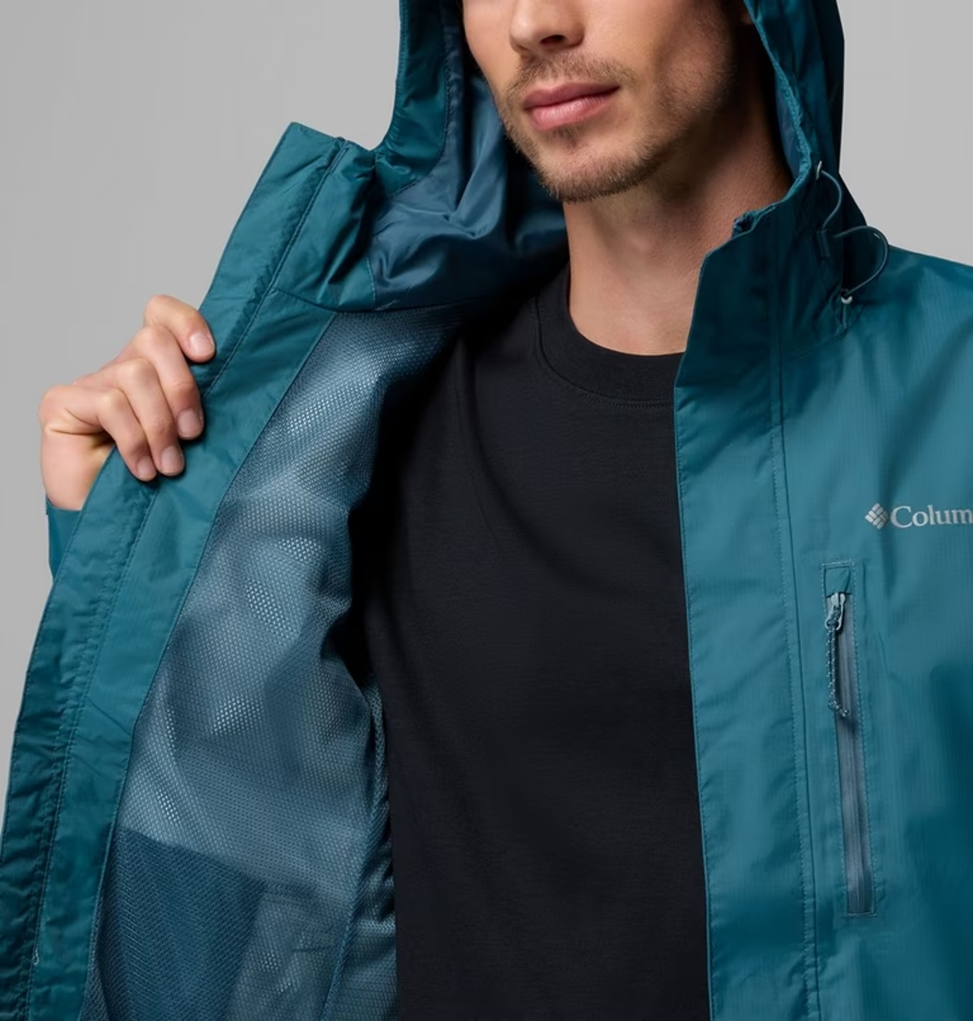 A waterproof hooded shell designed for the outdoors.