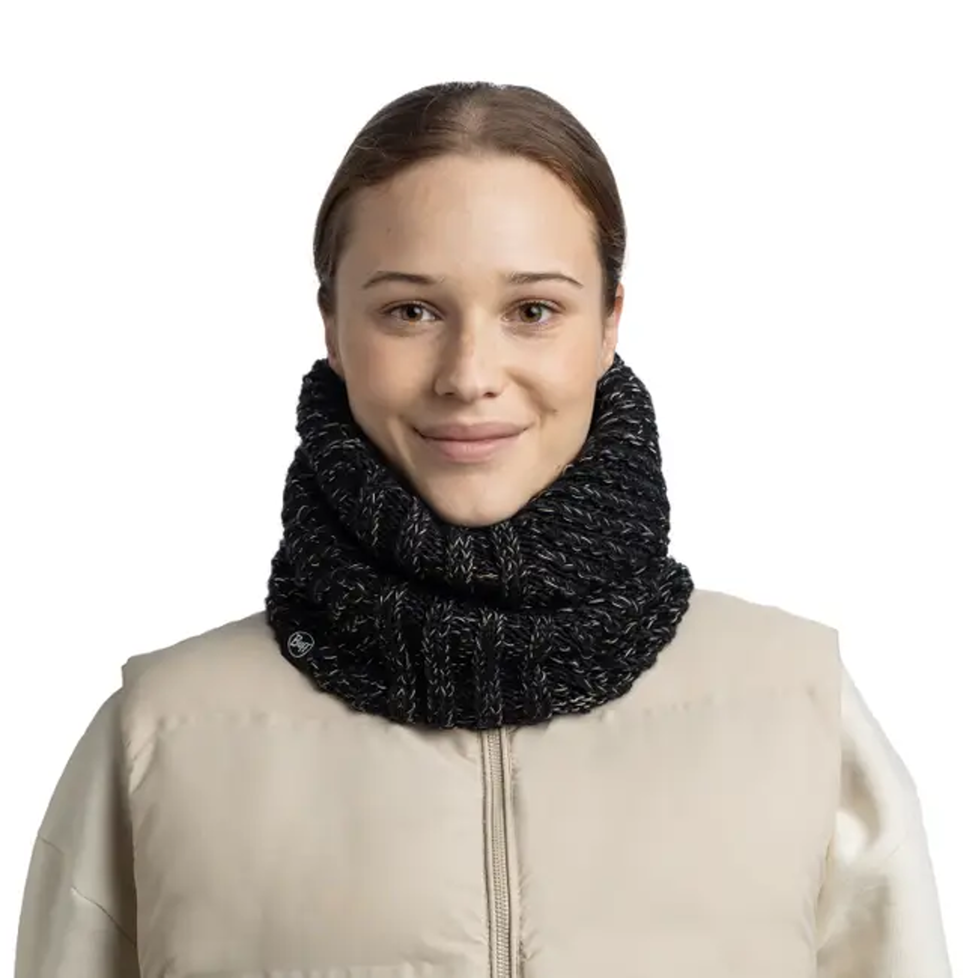 Buff Knitted and Fleece Neckwarmer in Akna Black