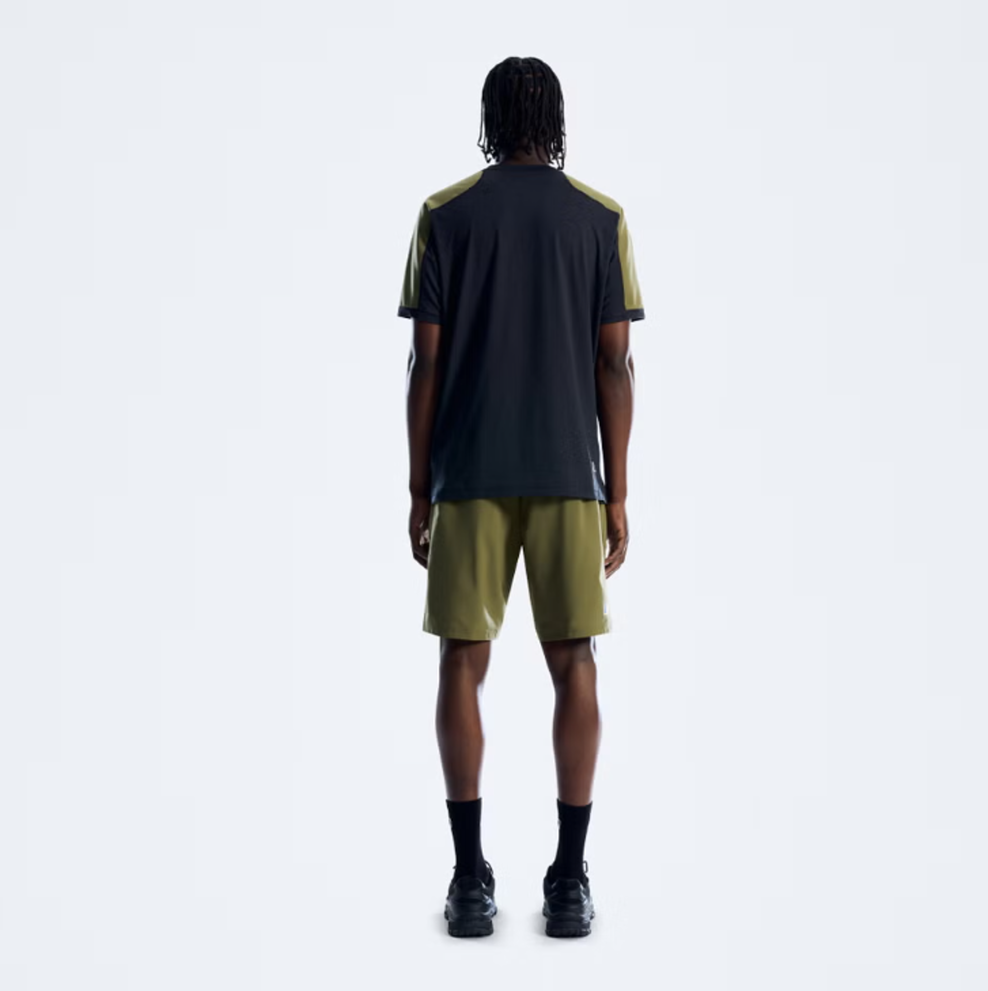 A soft marled jersey meets a lightweight woven overlay with just enough structure. Flat-locked seams. Stretch collar. Clean lines. Everything good. Nothing extra.